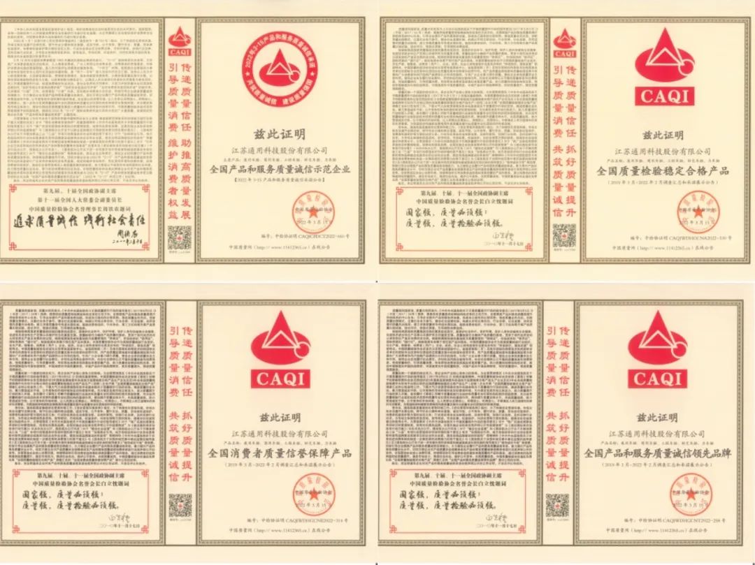 3月15日,通用股份被中国质量检验协会授予2022年全国产品和服务质量诚信示范企业、全国消费者质量信誉保障产品、全国质量检验稳定合格