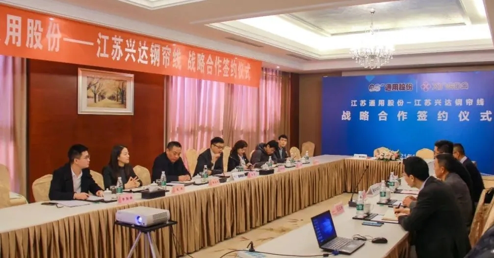 1月29日,通用股份与江苏兴达钢帘线股份有限公司举办战略合作签约仪式,通用股份董事长顾萃、联席总经理程金元,兴达集团总经理刘祥、