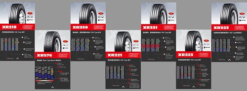 此次“风火轮”系列产品包括:XR218、XR576、XR259、XR221、XR321、XR223、XR323。均采用全新胎侧设计,新增用途图标以及最佳安装轮位,司机朋友们可根据个人驾驶需求和行驶的道路条件进行产品选择。