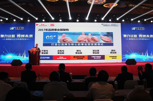 通用股份赤兔马事业部总经理陈志军在会上说,创新是引领企业发展的第一动力,2017年,为进一步推进品牌差异化发展,通用股份进行了架构改革、制度创新,实施了以品牌为核心的事业部产供销一体化管理模式,集中优势资源统一管控,创新营销机制,渠道运营质量不断提升,成功打造了坚实的产供销一条龙体系。2018年,赤兔马事业部将继续发扬“创业、创新、工匠、学习、担当”五种精神,走精益化研发和生产路线,不断巩固和加强通用股份品牌影响力和市场占有率。