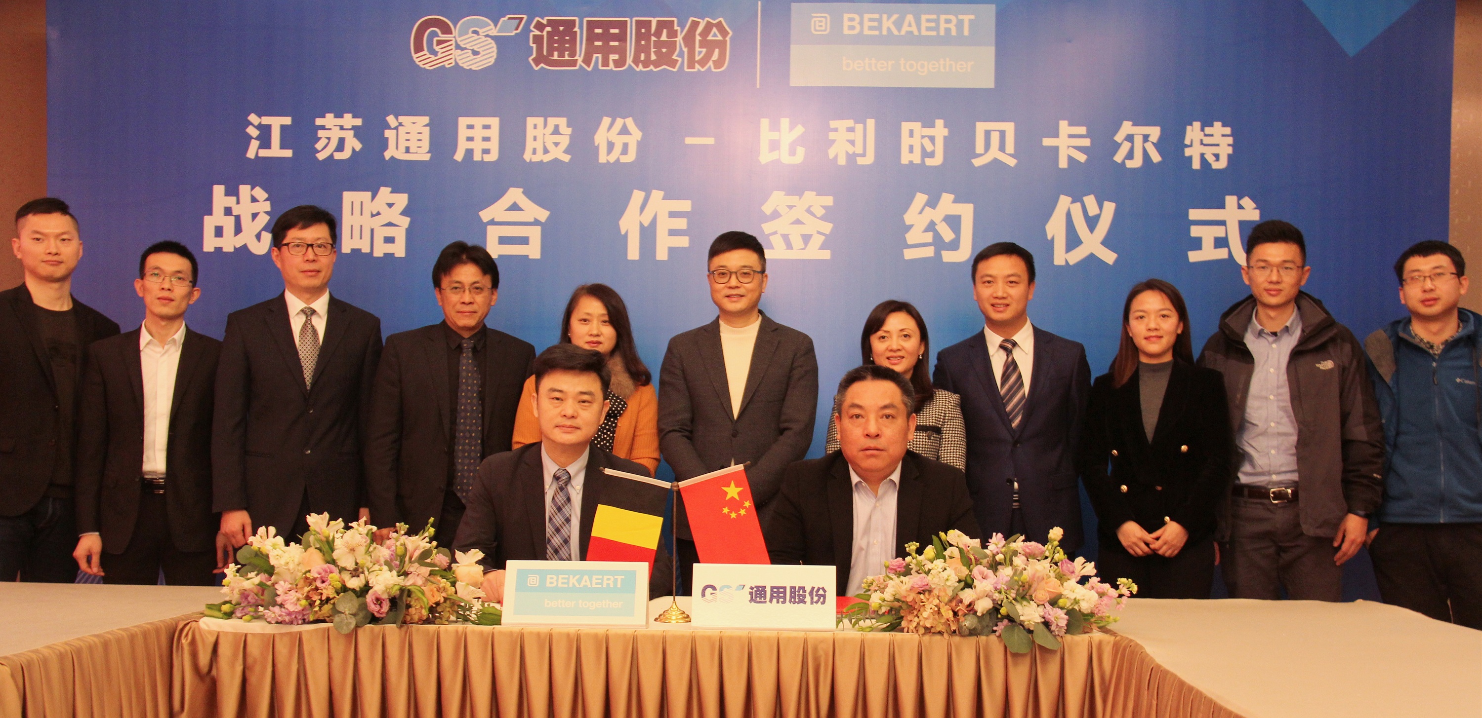 1月21日,通用股份与比利时贝卡尔特钢帘线签署深化战略合作协议。通用股份董事长顾萃、常务副总经理程金元,贝卡尔特北亚区商务总经理王穗生等领导共同见证此次签约。