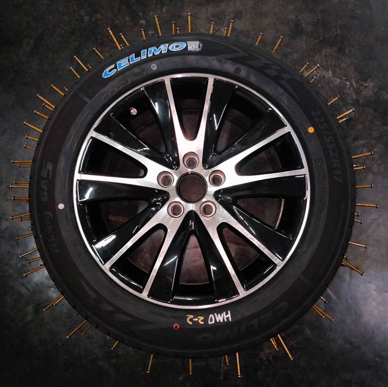 千里马抗扎胎100根钉子扎胎实验 ▲