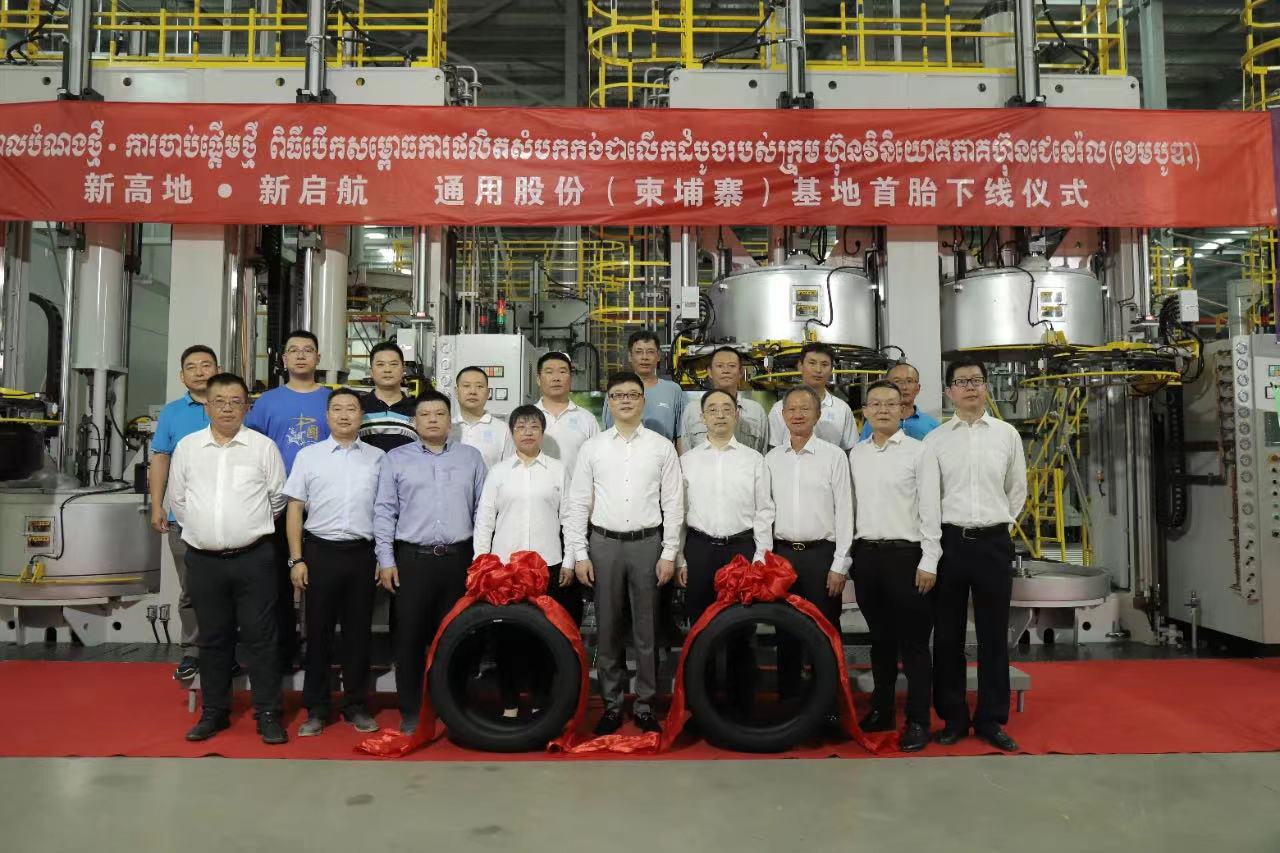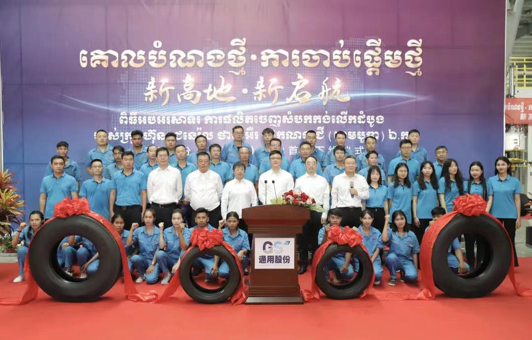 科技柬埔寨公司总经理陶国忠的倒数声中,柬埔寨工厂首胎成功下线,标志着通用股份海外“双基地”的正式建成、全面启航。在首胎下线仪式上,西哈努克省省长郭宗仁、乔治·布什美中关系基金会创始人兼主席尼尔·布什,中国民营经济国际合作商会会长、红豆集团董事局主席周海江,通用股份董事长顾萃等相关领导和全体员工共同见证了这一历史时刻。