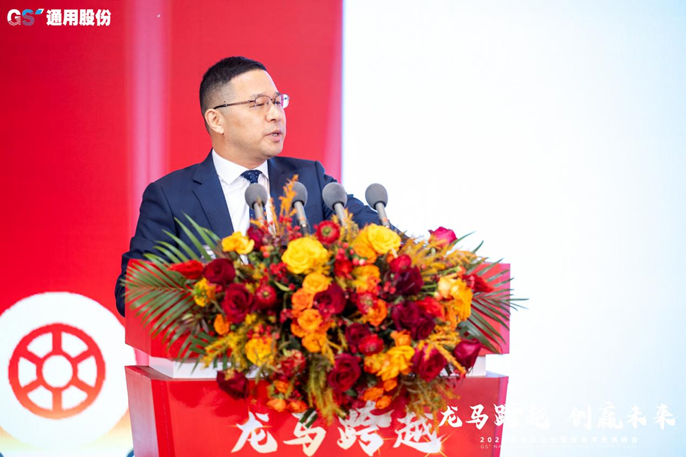 唯革新者进,唯奋楫者强。年会伊始,通用股份总经理程金元发表主题讲话,和在座经销商朋友深度剖析宏观和行业形势,洞察市场趋势变化,鼓励大家“心有所信,方能行远”,坚持创新发展、使命必达。他指出,在当下复杂多变、竞争激烈的市场环境下,通用股份将携手各位经销商,抢抓机遇、积极应变,开展 “研发、采购、制造、质控、营销、管理”全过程创新提升,重构竞争新优势,再创新辉煌。