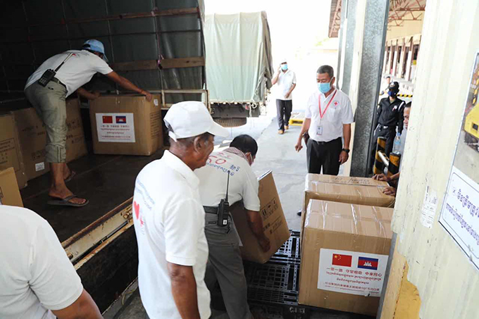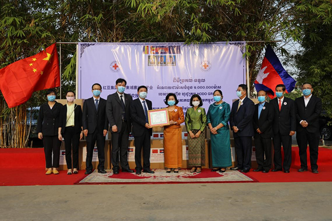 柬埔寨王国当地时间4月1日下午4:00(北京时间17:00),一场“红豆集团捐赠柬埔寨红十字会100万只口罩接收仪式”正在柬埔寨红十字会会长、柬埔寨王国首相洪森夫人文拉尼亲王的办公室内举行。中国驻柬埔寨大使馆经济商务参赞处参赞邬国权、西哈努克港经济特区公司总经理曹建江和柬埔寨红十字会副会长ANY SOKAN、秘书长POM CHANNY,柬埔寨红十字会卫生局局长SOK LONG等出席活动。