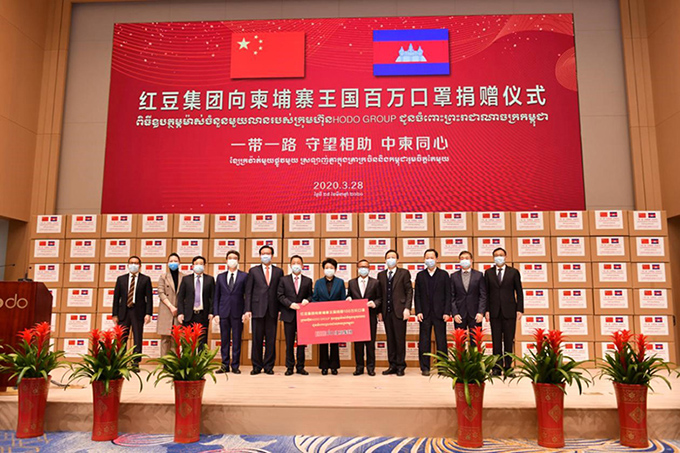 记者了解到,此前3月28日作为在柬投资、主导开发西港特区的中国龙头企业——红豆集团,专门向柬埔寨王国捐赠了100万只口罩。“患难见真情”。在柬埔寨疫情防控进入攻坚期,红豆人以实际行动表达了中国人民对洪森首相英明领导的一份敬意,对柬埔寨人民的一份深厚情意。