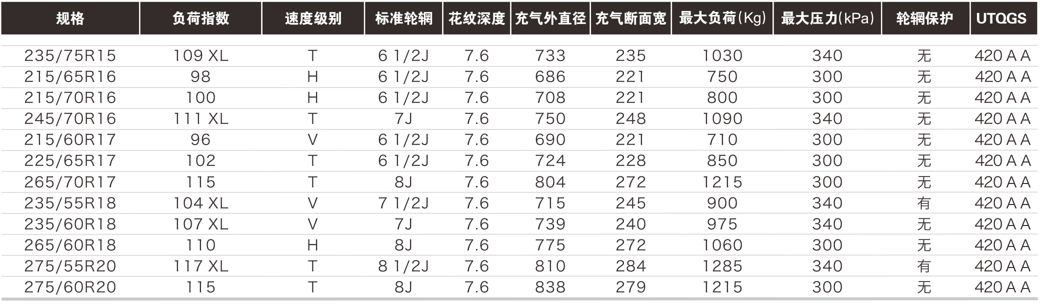 高密度槽的设计和特殊的配方缩短了干燥和潮湿条件下的制动距离。