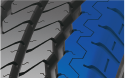 中间大块斜向花纹块和耐磨胎面配方设计,提供优异的使用里程。